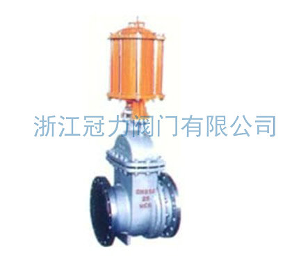 PZ641H 型 PN16~PN63 气动钢制排渣闸阀:气动、法兰连接、明杆楔式刚性单闸板,阀座密封面材料为碳素钢堆焊铁基合金,公称压力 PN16~PN63,阀体材料为碳素钢的排渣闸阀。